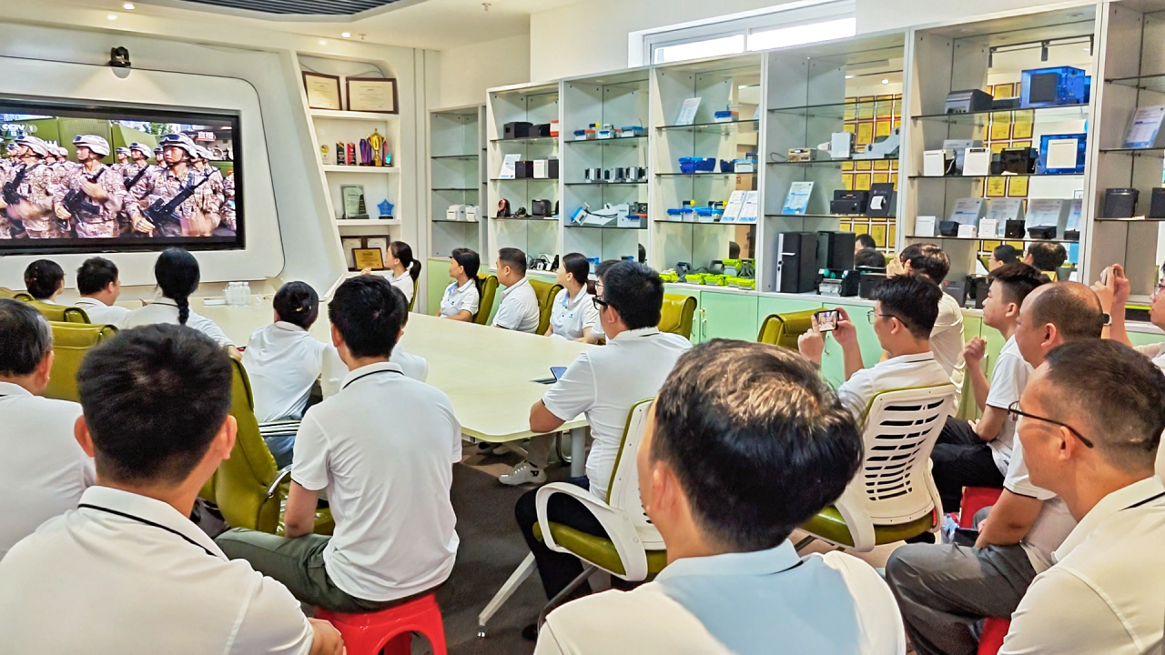 2025年9月3日上午,為讓員工在新時代傳承紅色基因、增強國家認(rèn)同感,作為打印機(jī)領(lǐng)航企業(yè),美松集團(tuán)深圳公司組織了,來自銷售、研發(fā)、市場等部門的員工,在會議室同步觀看《紀(jì)念中國人民抗日戰(zhàn)爭暨世界反法西斯戰(zhàn)爭勝利80周年大閱兵》電視直播活動,進(jìn)一步弘揚愛國主義精神。屏幕上滾動顯示著閱兵現(xiàn)場的氣勢恢宏和受閱部隊的鏗鏘步伐,會議室現(xiàn)場氣氛莊重而熱烈。部分員工還在工位上用手機(jī)觀看直播并在留言區(qū)踴躍互動,分享對歷史的感悟與對未來國家發(fā)展的期待。