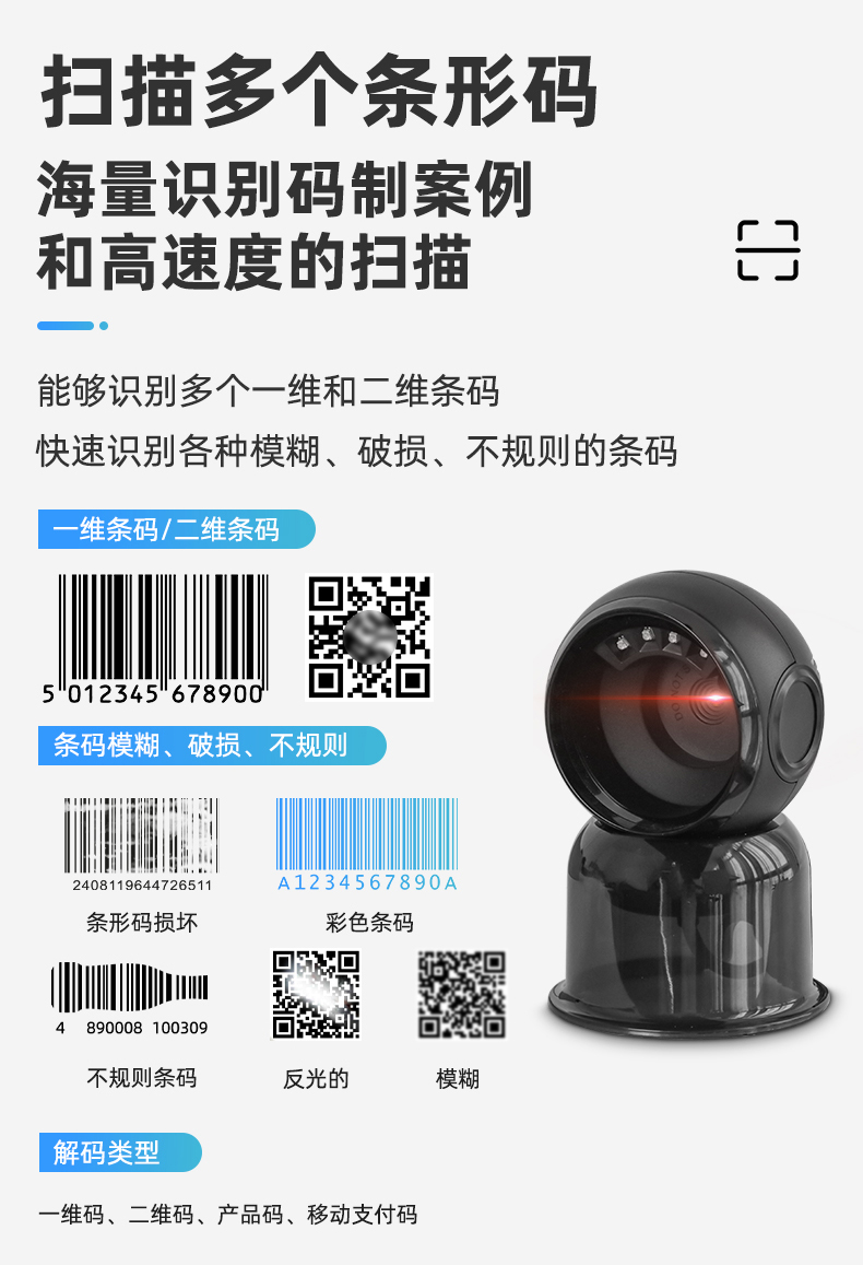 MS-7310_桌面掃碼平臺(tái)有線式 產(chǎn)品特點(diǎn): 領(lǐng)先解碼技術(shù) 采用自主研發(fā)的核心技術(shù),極速響應(yīng), 支持快速開發(fā)和定制需求 高運(yùn)動(dòng)容差 采用全局曝光鏡頭搭配快速抓取技術(shù),可實(shí) 現(xiàn)在運(yùn)動(dòng)過程中快速讀取 褶皺殘缺碼優(yōu)化 對(duì)褶皺和殘缺條碼進(jìn)行算法優(yōu)化,條碼可識(shí)讀率更高 紙質(zhì)碼/手機(jī)碼流暢切換 商品碼紙質(zhì)碼和手機(jī)支付碼間自動(dòng)切換,流暢高效 應(yīng)用場景: 新零售、檢票、醫(yī)療等桌面設(shè)備。尤其適合零售商品碼和其他高密、反光、殘缺、褶皺條碼的運(yùn)動(dòng)中讀取。